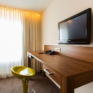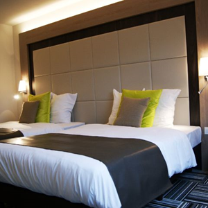 Fornitura dell'arredamento su misura per l'albergo 3 stelle Malpertuus presso Riemst in Belgio. Le pareti scrittoio e le testiere letto sono state realizzate in nobilitato tamburato con un rivestimentodi pannelli in ecopelle imbottiti. Anche scrittoi e posavaligie sono stati realizzati con pannelli tamburati.